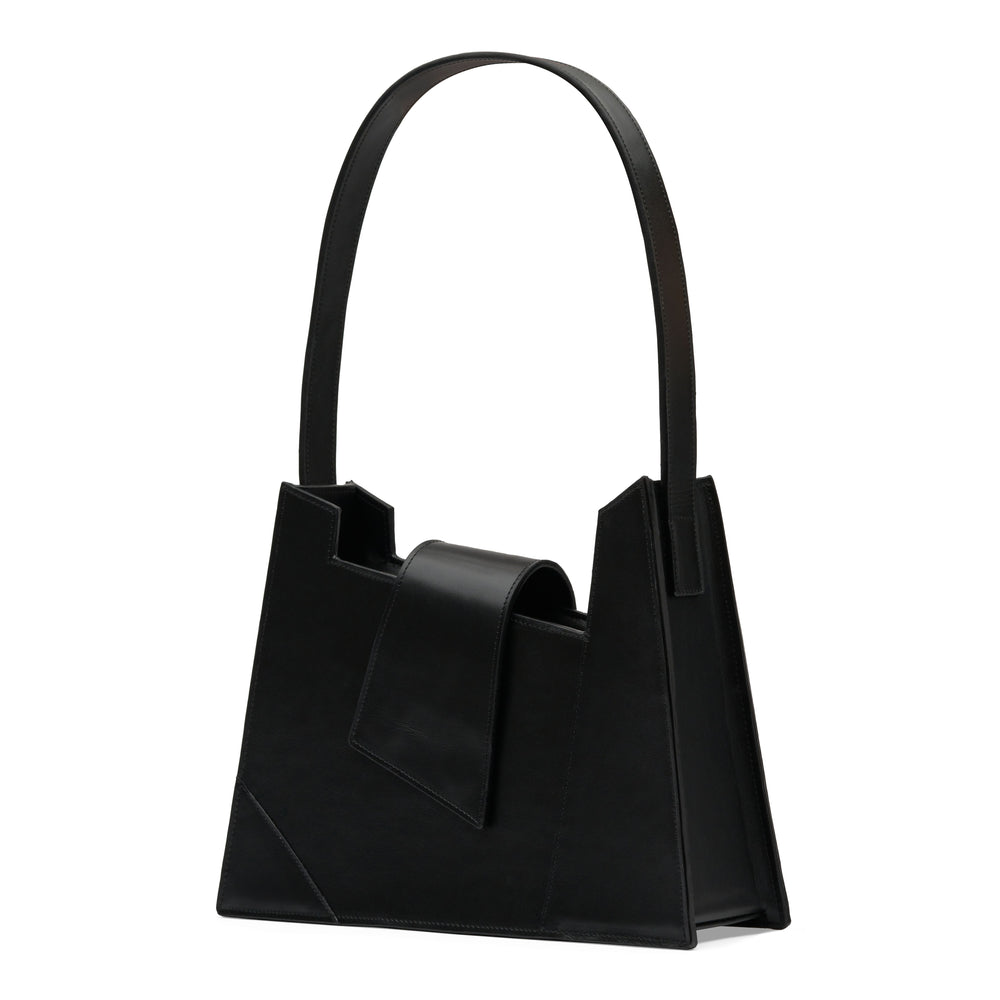 Asimetrinių formų rankinė, tinkanti prie įvairių stilių rūbų ir visoms progoms. Nuo eilinės dienos darbe iki romantiškos vakarienės restorane. Ji neidelė, bet itin talpi, tad nereikės sukti galvos ar tilps visi būtiniausi daiktai.